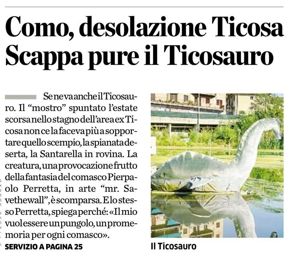 Il “Ticosauro” non è sopravvissuto allo scempio e oggi rimane solo il “Parco Naturale della Ticosa”. Era Prevedibile e per questo abbiamo realizzato questo video che ha ››